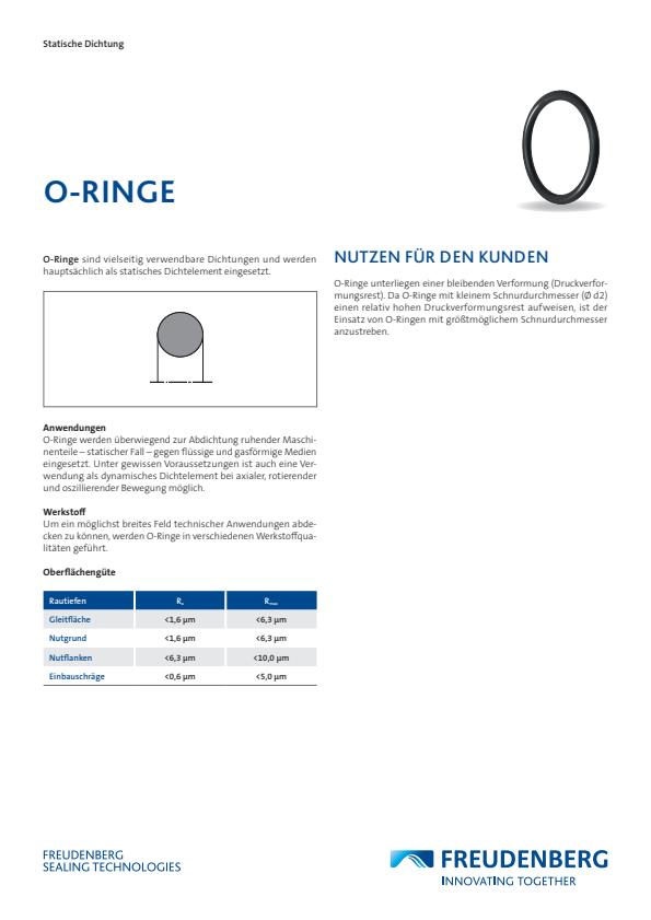 O-Ringe sind vielseitige Dichtungen, hauptsächlich für statische Anwendungen in Maschinen zur Abdichtung gegen Flüssigkeiten und Gase. Sie können unter bestimmten Bedingungen auch dynamisch verwendet werden. O-Ringe sind in verschiedenen Werkstoffen erhältlich, um vielfältige technische Anforderungen zu erfüllen. Größere Schnurdurchmesser werden empfohlen, um den Druckverformungsrest zu minimieren. Freudenberg Sealing Technologies bietet innovative Lösungen in diesem Bereich.