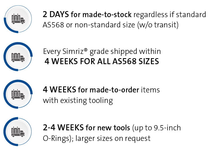 Discover Simriz® grades in stock now — ready for rapid delivery and immediate deployment! Don’t let critical projects stall — our made-to-stock inventory means your seals are just a click or call away. Act fast to secure premium Simriz® FFKM seals before they're gone!
